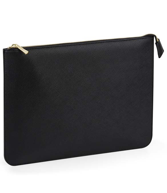 - 100% Leather-look PU. Saffiano fine grain. Multipurpose use. Soft-touch lining. High-shine gold metal zip. TearAway label for eay rebranding. Designed to comfortably fit A4 folders.
